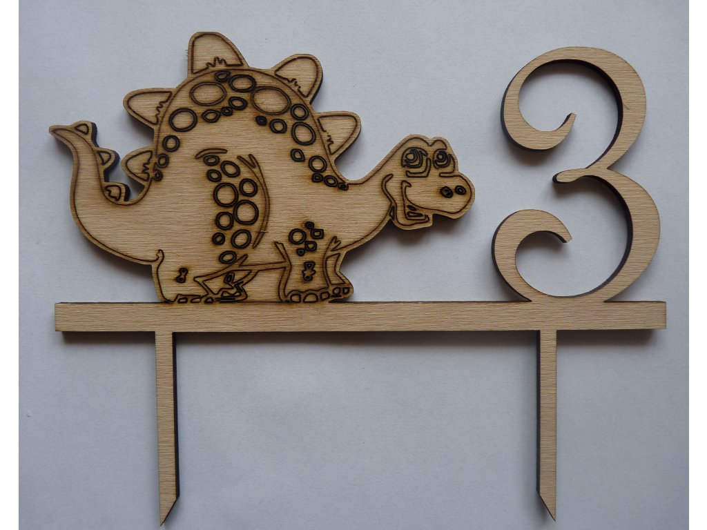 Dortový zápich s motivem dinosaura s číslovkou.