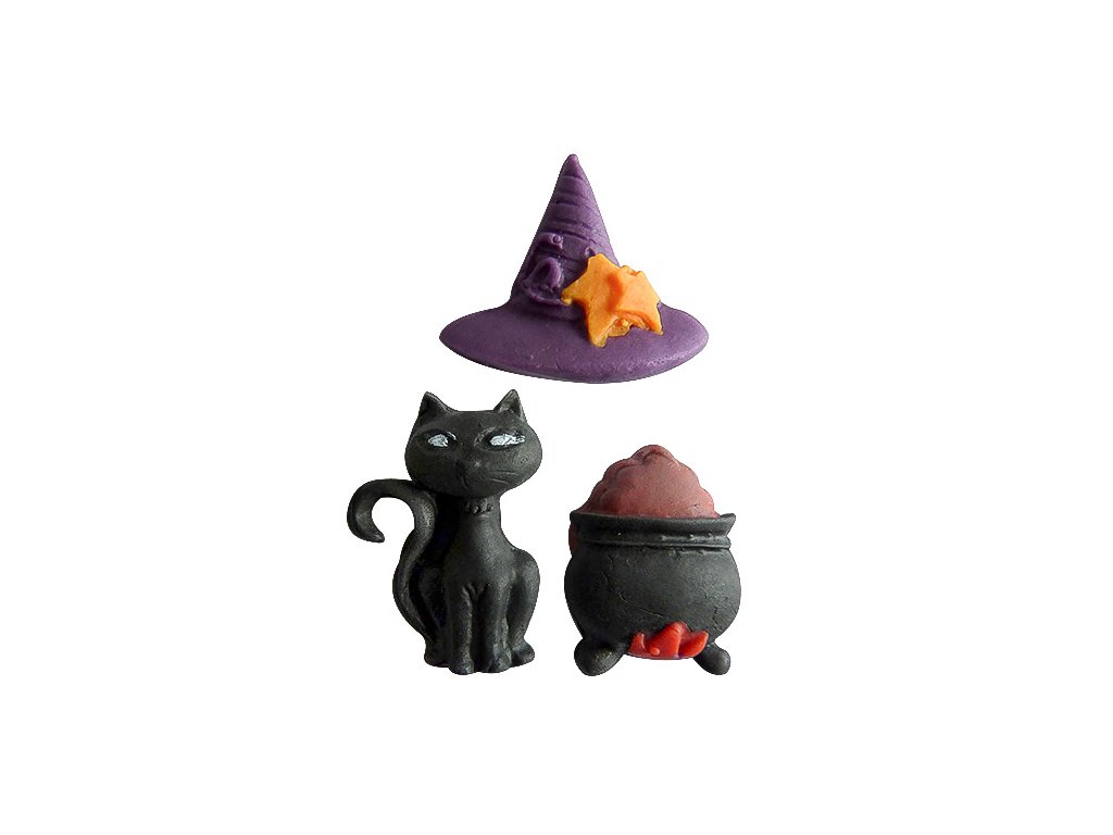 Velikost motivů: klobouk - 27x30mm, kočka - 32x23mm, kotlík - 27x20mm