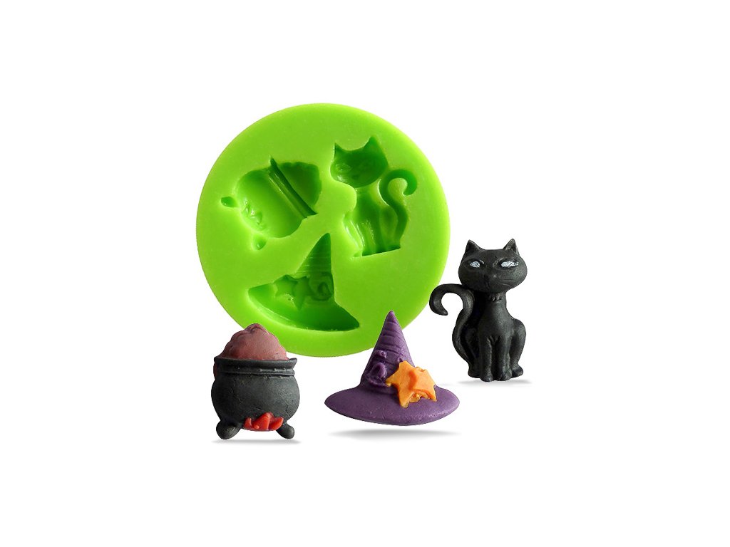 Silikonová formička s halloweenskými motivy. Do formičky je možné natlačit cukrářské hmoty, nalít čokoládu, isomalt atd.