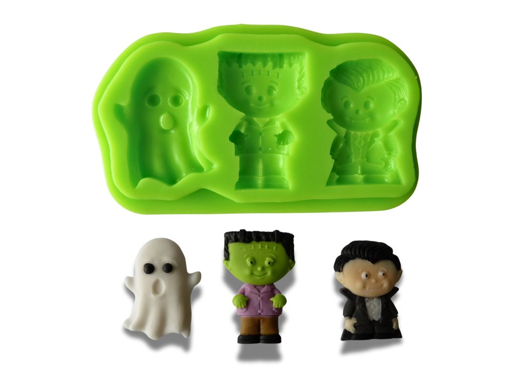 Silikonová formička s motivem upíra, ducha a Frankensteina.