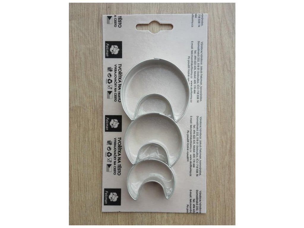 Sada tří kusů vykrajovátek z pocínovaného plechu ve tvaru rohlíčků.