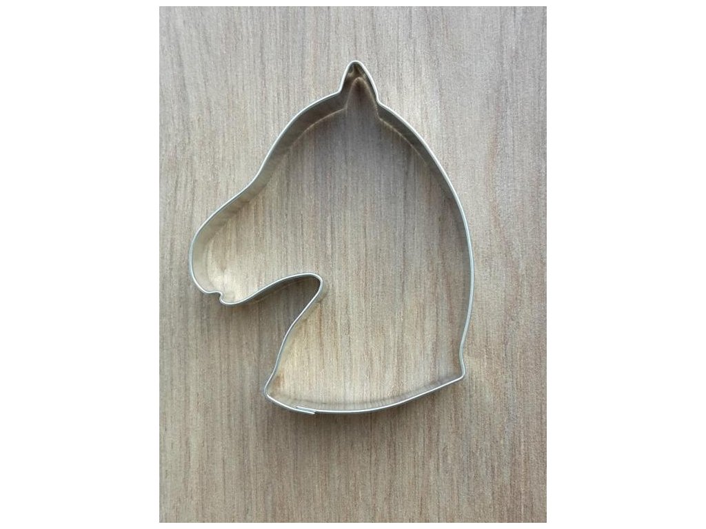 Vykrajovátko z pocínovaného plechu ve tvaru koňské hlavy.