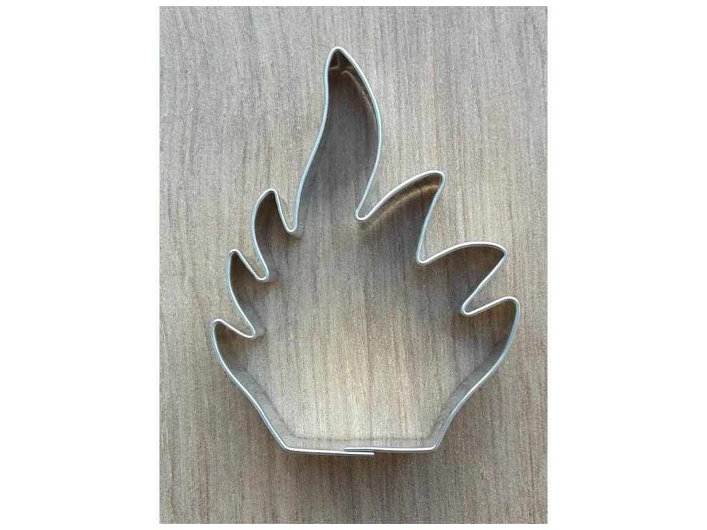 Vykrajovátko z pocínovaného plechu ve tvaru plamene.