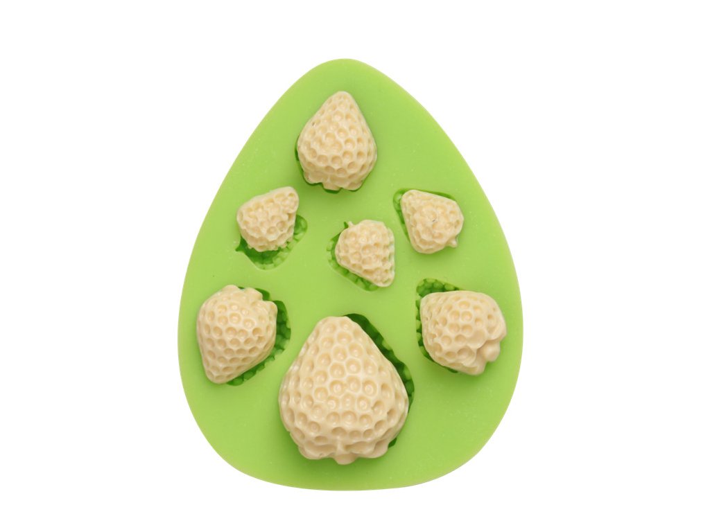 Silikonová formička na tvorbu jahod z marcipánu.