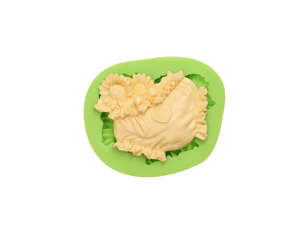 Silikonová formička dětských kalhotek s květinovým vzorem.