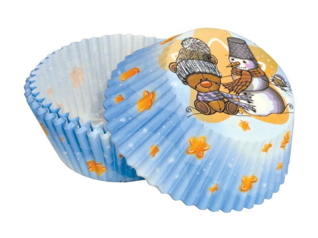 Papírové košíčky na muffiny s motivem sněhuláka a medvídka.