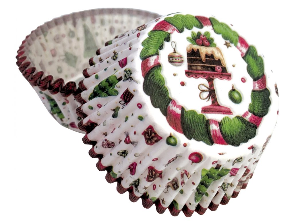 Papírové košíčky na muffiny a cupcakes s vánočním motivem.