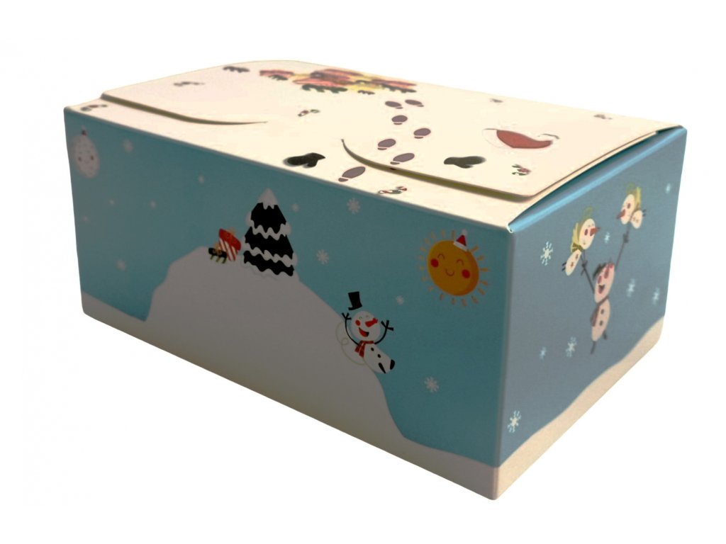 Papírová krabička na cukroví s vánočním motivem.