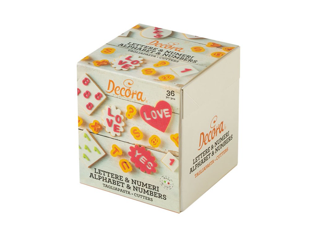 Plastová vykrajovátka ve tvaru písmen a číslic. Vykrajovat lze z cukrářských hmot nebo z těsta na sušenky.