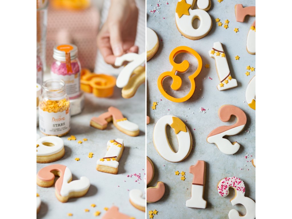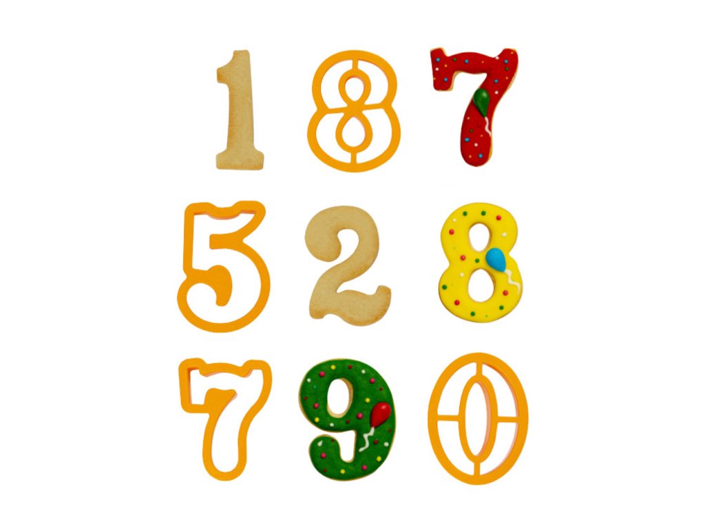 Plastová vykrajovátka ve tvaru číslic. Vykrajovat lze z modelovacích hmot nebo těst na sušenky.