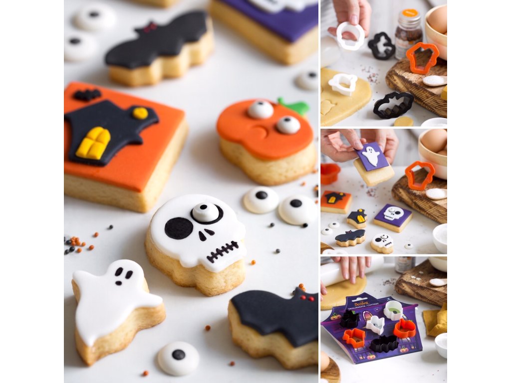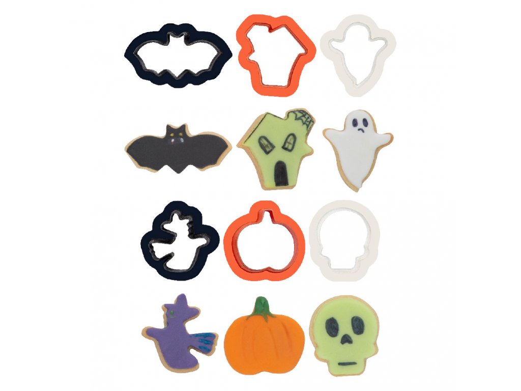 Sada vykrajovátek s motivem Halloween. Sada obsahuje 6 mini plastových vykrajovátek; ideální pro výrobu sušenek nebo ozdob z cukrových hmot.