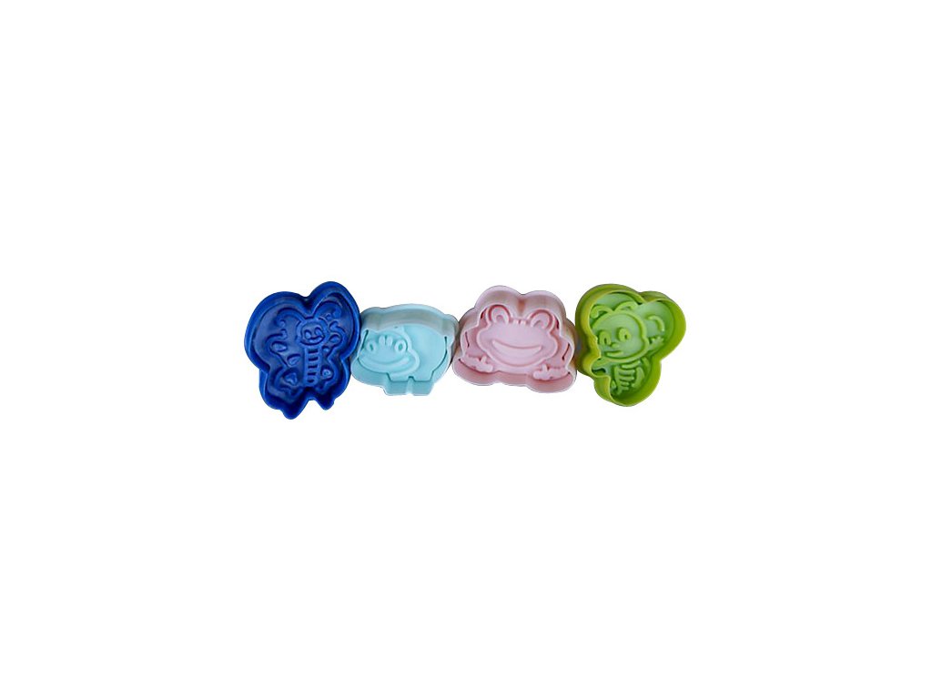 Sada obsahuje vykrajovátko ve tvaru hrocha, žáby, motýlka a včelky.
