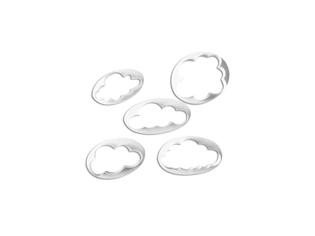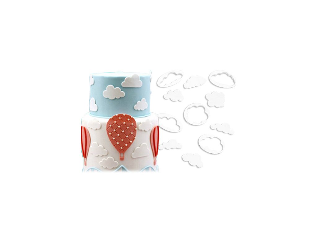 Sada vykrajovátek ve tvaru mráčků určená k vykrajování z marcipánu, potahovacích hmot atd.