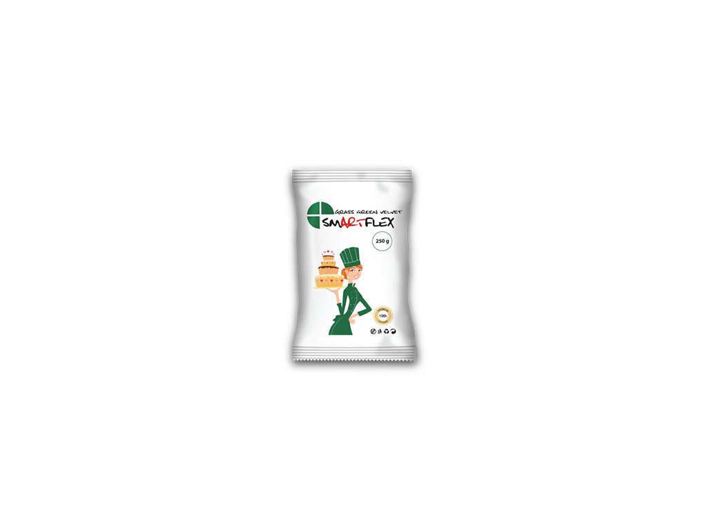 Zelená, extra pružná hmota s vynikajícími vlastnostmi, vhodná zejména k potahování dortů a modelování figurek. Při modelaci i potahování je velmi pružná, nelepí se, rychle si drží tvar.