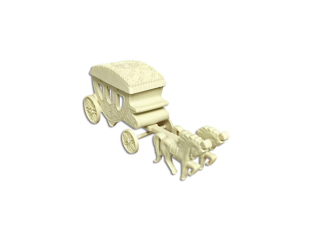 celková rozměry namodelovaného kočáru s koňmi (dxsxv) 16x6,5x6,5 cm
