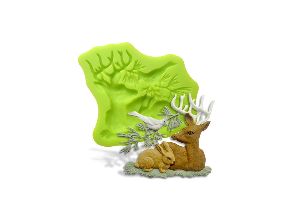 Silikonová formička s lesními zvířátky - jelen, zajíc, ptáček.
