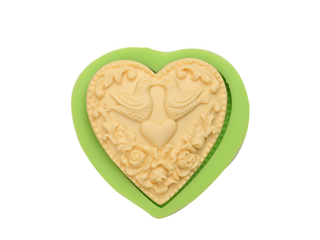 Silikonová formička ve tvaru srdce s motivem holubiček.