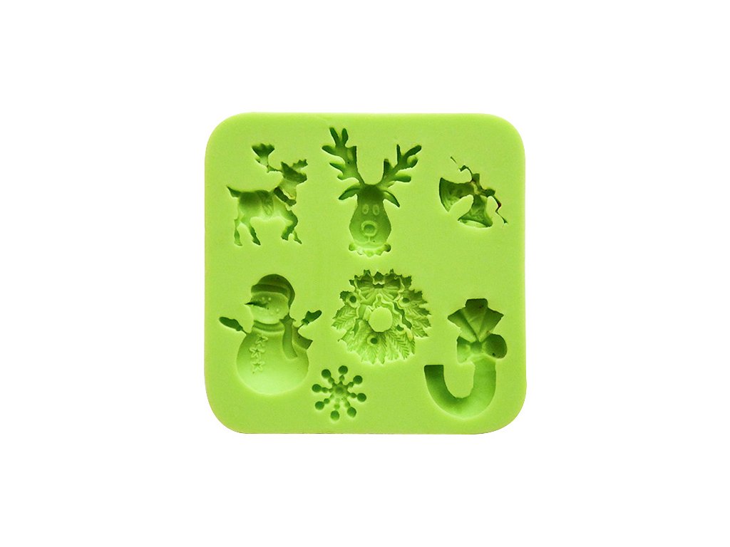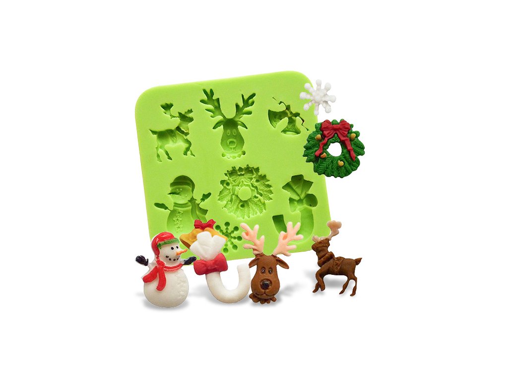 Silikonová formička s motivy sněhuláka, soba, zvonků, věnce, vločky.