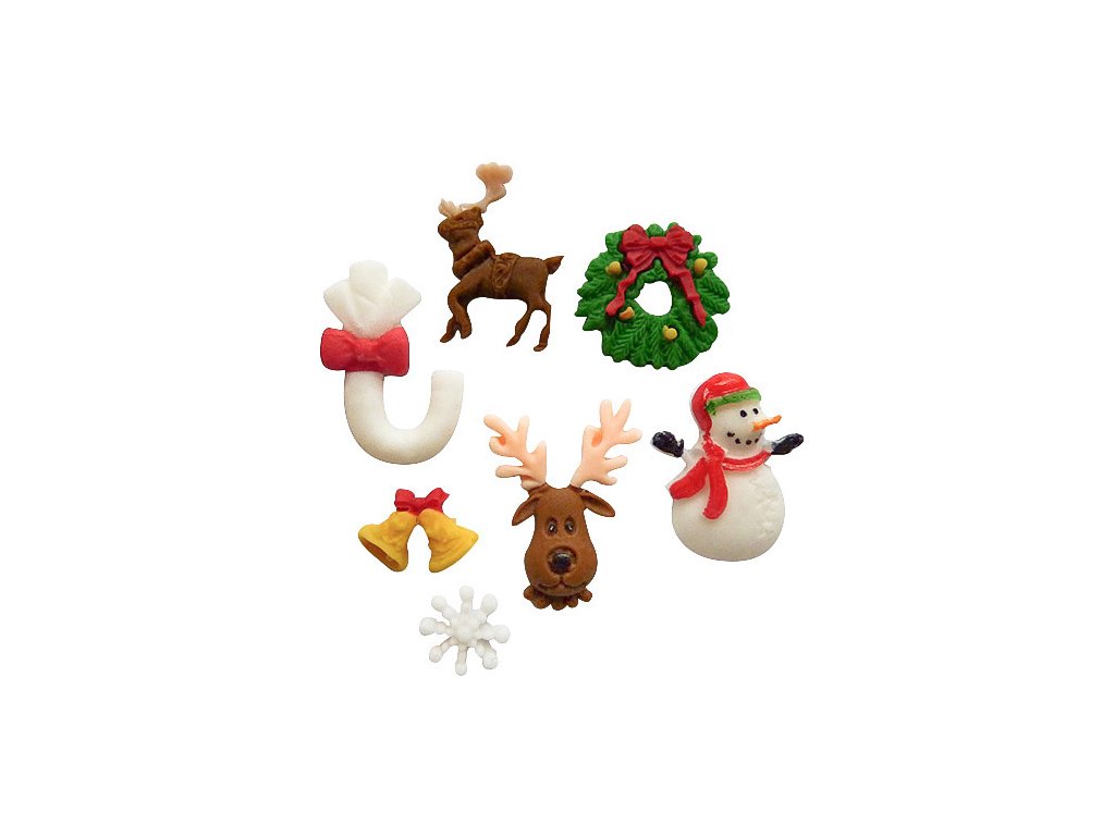 Velikost motivů: sněhulák - 30x26mm, sob - 20x26mm, hlava soba - 33x25mm, zvonky - 17x12mm, věnec - 25x25mm