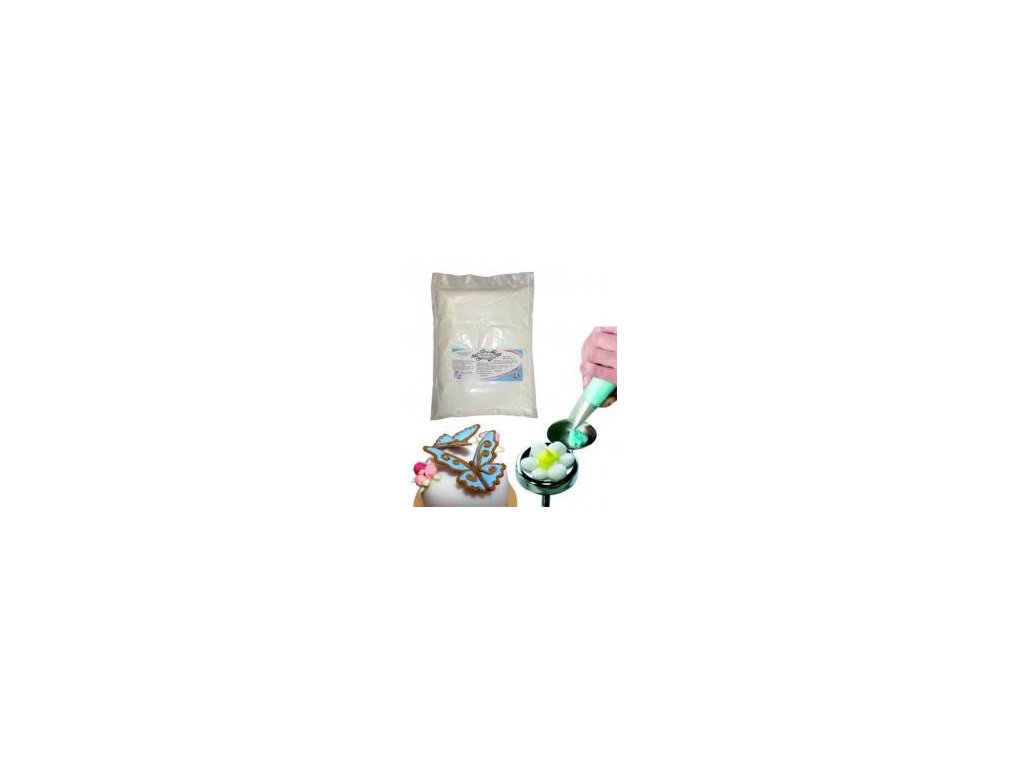 Hotová směs Královská glazura Super Ice (instatní bílková glazura) je ideální na: zhotovení cukrových dekorací, pro jemné dokončovací práce pomocí trezírovacího sáčku, tzv. krajkové zdobení na potahovacích hmotách (svatební dorty), na perníčkách, tvrdém pečivu a především při výrobě barevných květů. Glazura je jedlá, sněhově bílá a lze jí dle potřeb barvit. Směs výborně absorbuje různé typy barev. Neobsahuje čerstvý bílek a proto nehrozí riziko bakteriologické kontaminace nebo salmonely. Návod k použití: Na 200 g Super Ice přidáme 28 gr. studené vody. Vše zpracujeme šlehačem po dobu 2 minut na maximální počet otáček. (pro řidší glazuru je možné zvýšit dávkování vody)