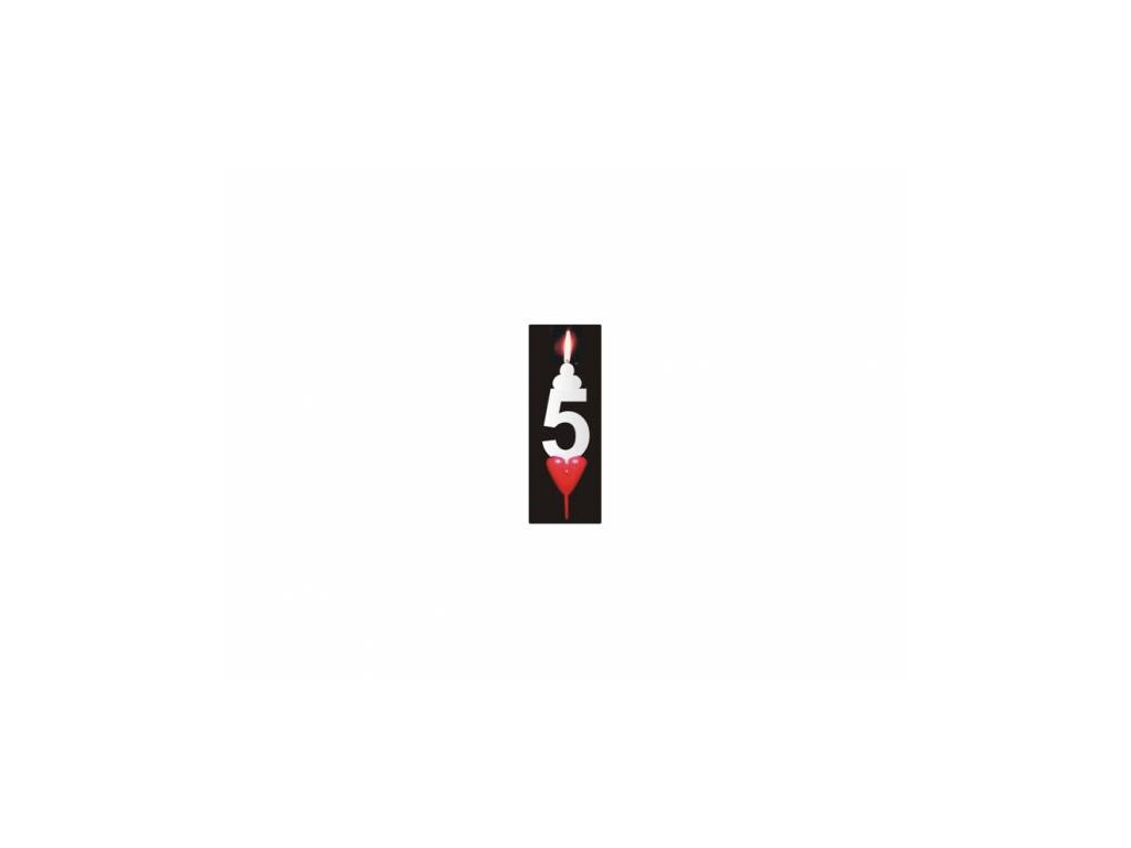 Bílá dortová svíčka se srdíčkem - číslice 5