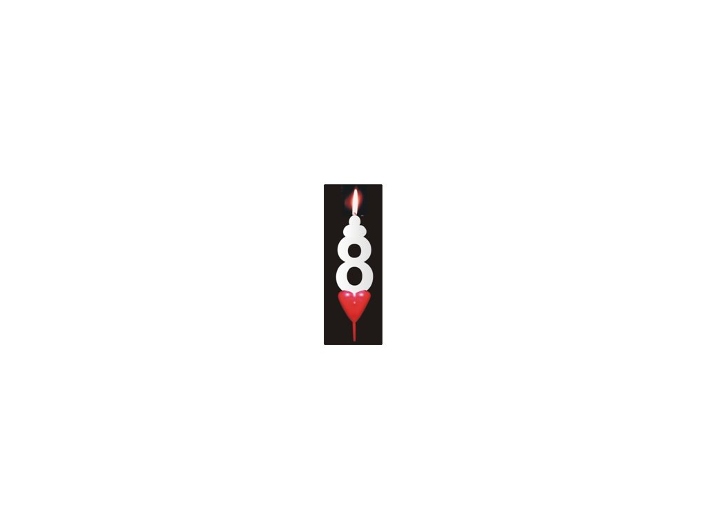 Bílá dortová svíčka se srdíčkem - číslice 8