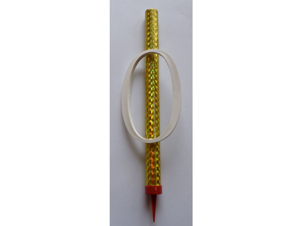 Fontána na dort ve zlaté barvě s číslicí - 0. Číslice je vyrobena z bílého plastu.