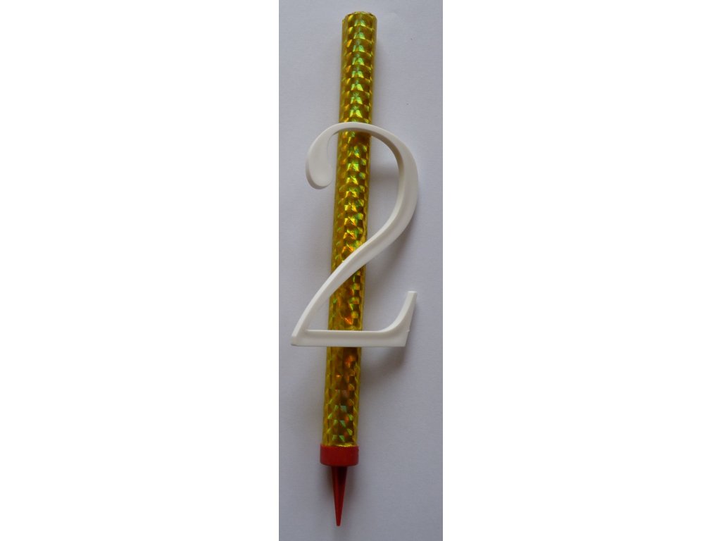 Fontána na dort ve zlaté barvě s číslicí - 2. Číslice je vyrobena z bílého plastu.
