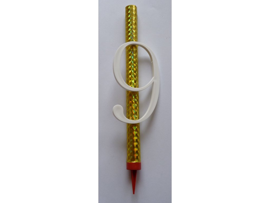 Fontána na dort ve zlaté barvě s číslicí - 9. Číslice je vyrobena z bílého plastu.