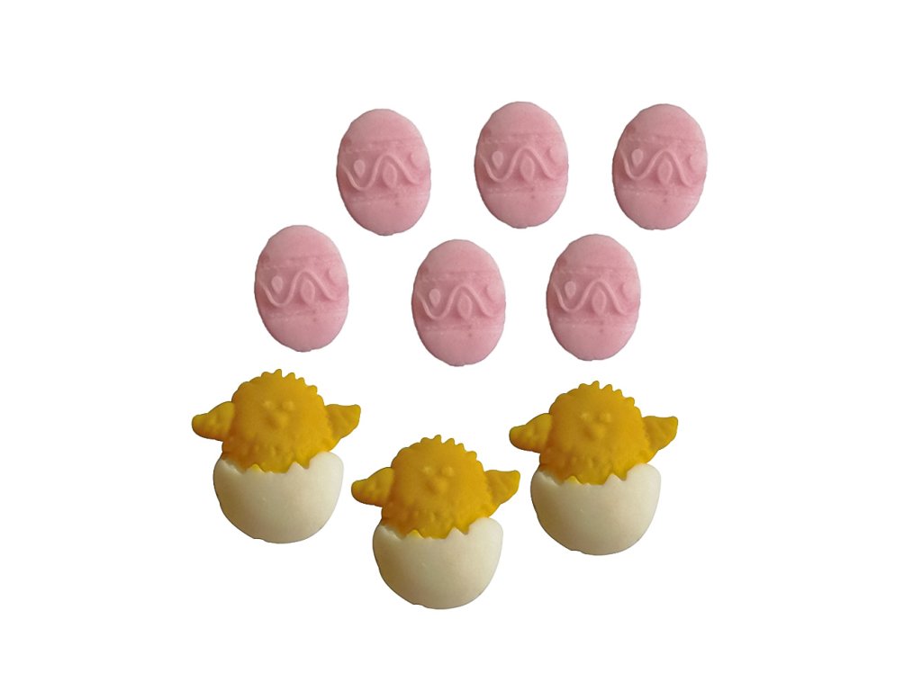 Velikost motivů: kuřátko - 21x19mm, vajíčko - 14x10mm