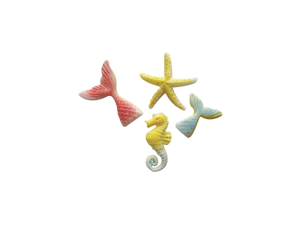 Velikost motivů: mořský ocas - 40x28mm, 30x24mm, mořský koník - 38x15mm, hvězdice - 38x37mm